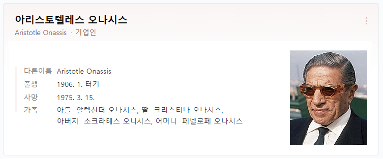 서두에서 언급했듯 '아리스토텔레스 소크라테스 오나시스'라는 이름은
